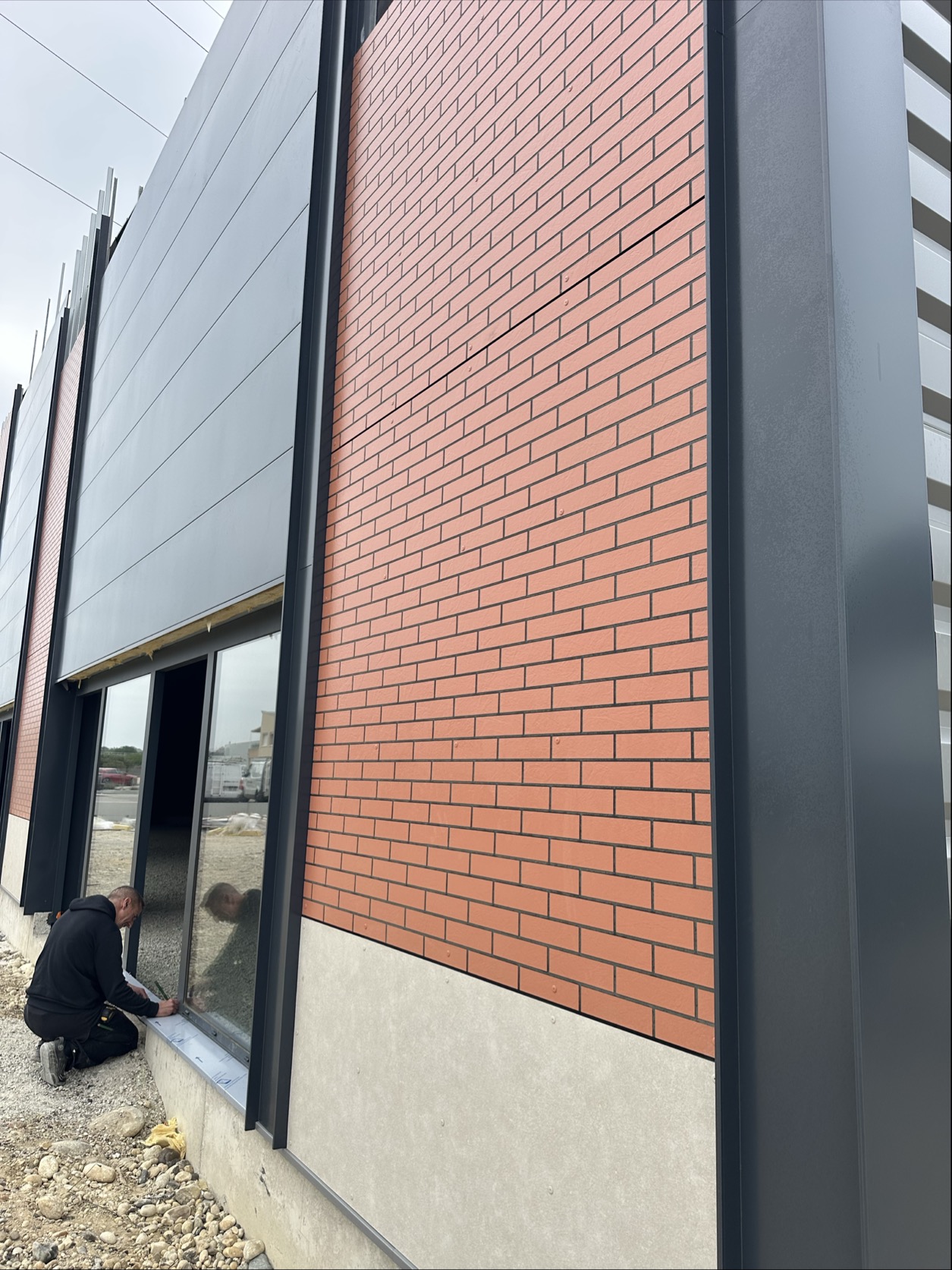 Dans le cadre de ce chantier à Soyons, des panneaux Trespa® Meteon® A10.3.4 “Terra Cotta Rock” ont été mis en œuvre par Hervé Thermique 26. Un matériau que nous avons eu le plaisir d’usiner dans notre atelier pour un rendu chaleureux, précis et texturé qui rappelle la brique, tout en offrant les performances du stratifié hpl.