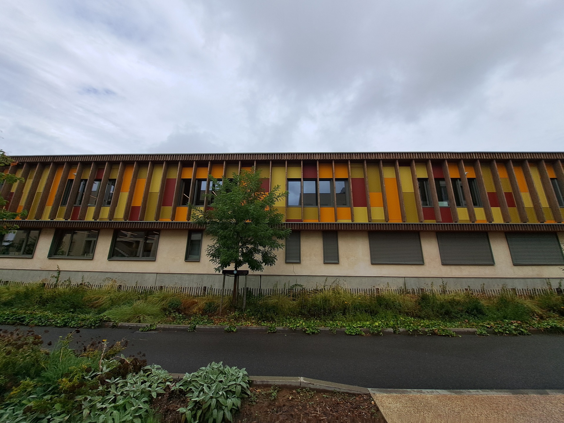 Sur le chantier du groupe scolaire de Trévoux, situé dans l’Ain (01), le bardage EQUITONE [pictura] a été installé sur un mur ossature bois isolé en paille, alliant ainsi performance thermique et esthétique architecturale. Ce projet, conçu par Damien Gallet Architecte et réalisé par l’entreprise Bezacier, illustre parfaitement l’intégration de matériaux durables dans une façade contemporaine et responsable. L’utilisation du bardage EQUITONE [pictura] apporte une finition lisse et colorée, idéale pour un bâtiment éducatif. Ce type de façade s’adapte parfaitement aux constructions à ossature bois, en assurant protection et durabilité.