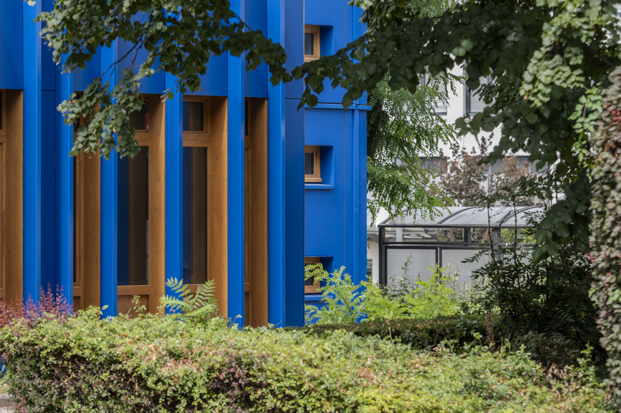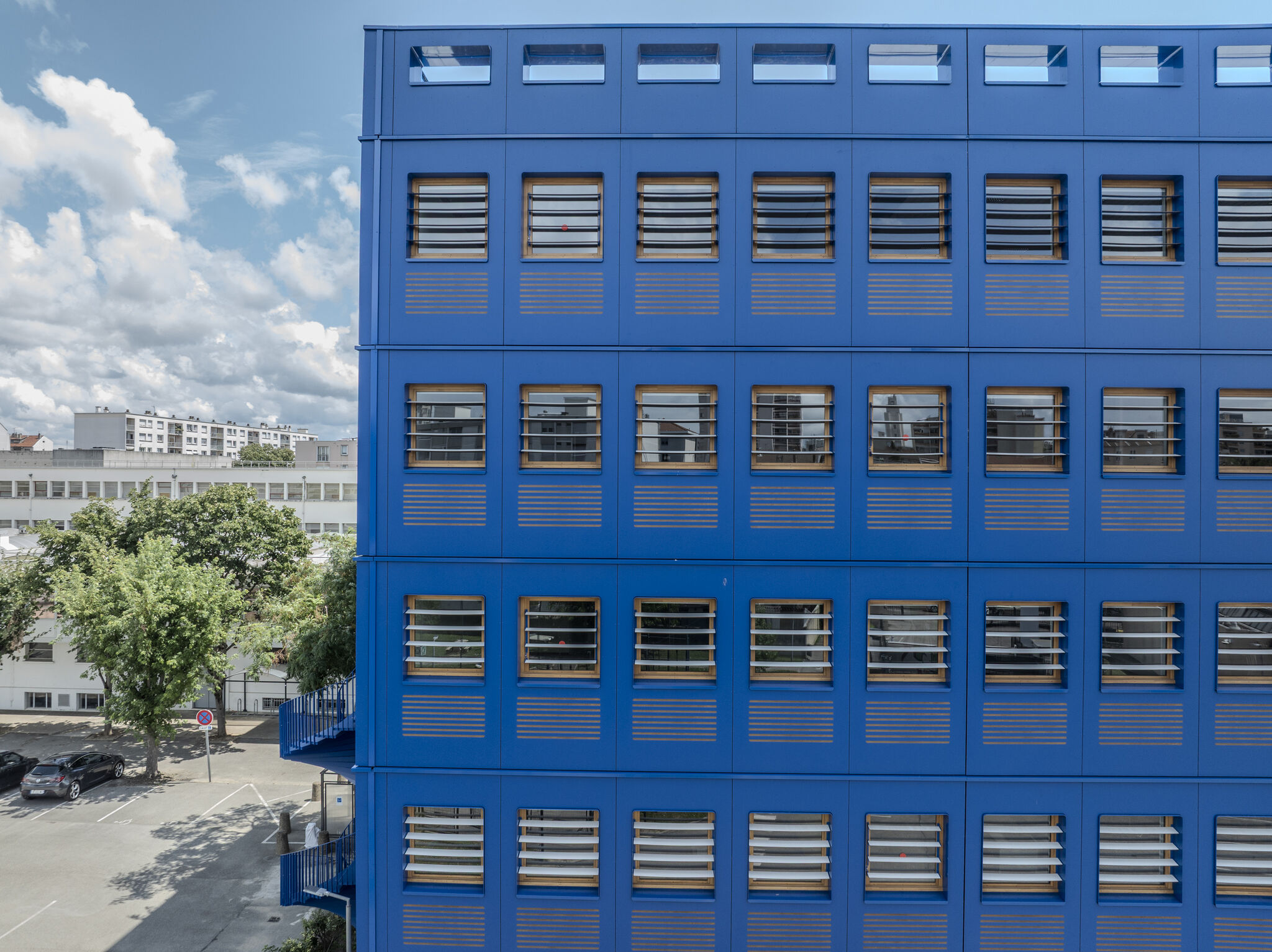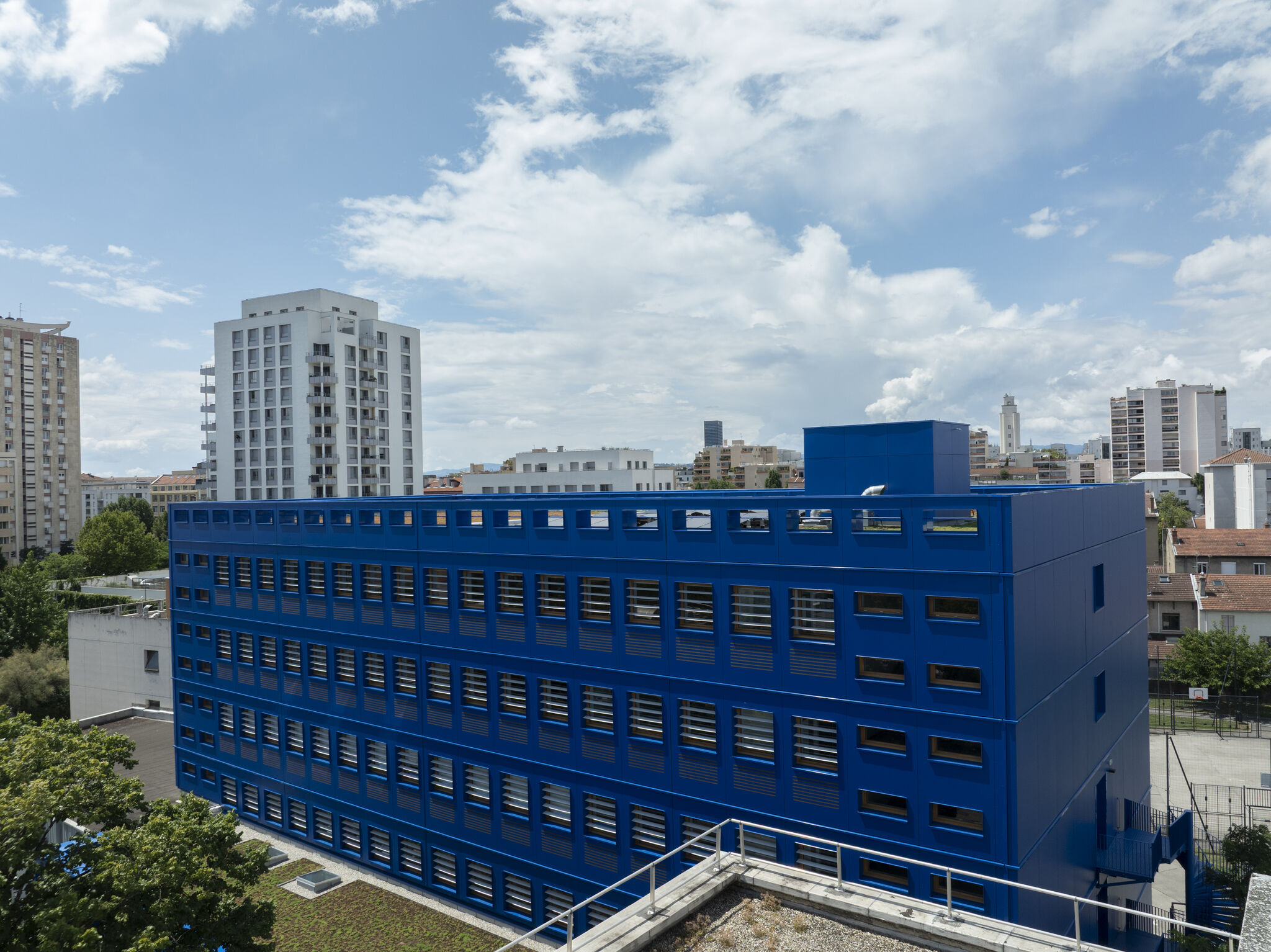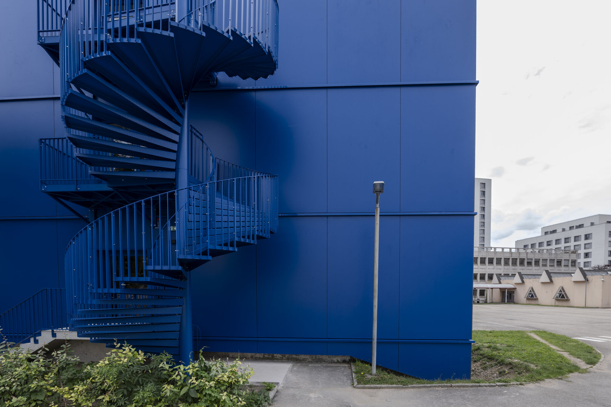 Pour la réhabilitation de l’IUT Gratte-Ciel à Ville de Villeurbanne, nous avons travaillé sur des panneaux Fundermax, soigneusement rainurés et usinés pour former des brise-soleil fonctionnels et esthétiques. Les étagères de lumière sont fixées sur des crémaillères que nous avons conçues. Architecte : Bruno QUIENNE - Supermixx architectes urbanistes. Entreprise de pose : CITINEA. Fabricant ossature bois et préfabrication : Charm'Ossaturee